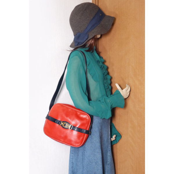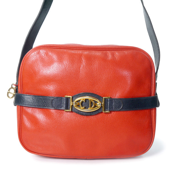 Old Dior ベルトデザイン総革CDロゴショルダー(赤)