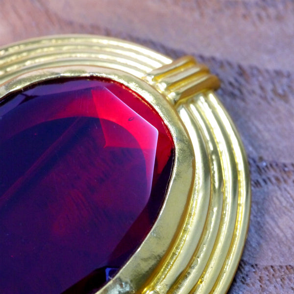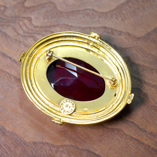 オールドセリーヌ ビッグレッドガラス ブローチ