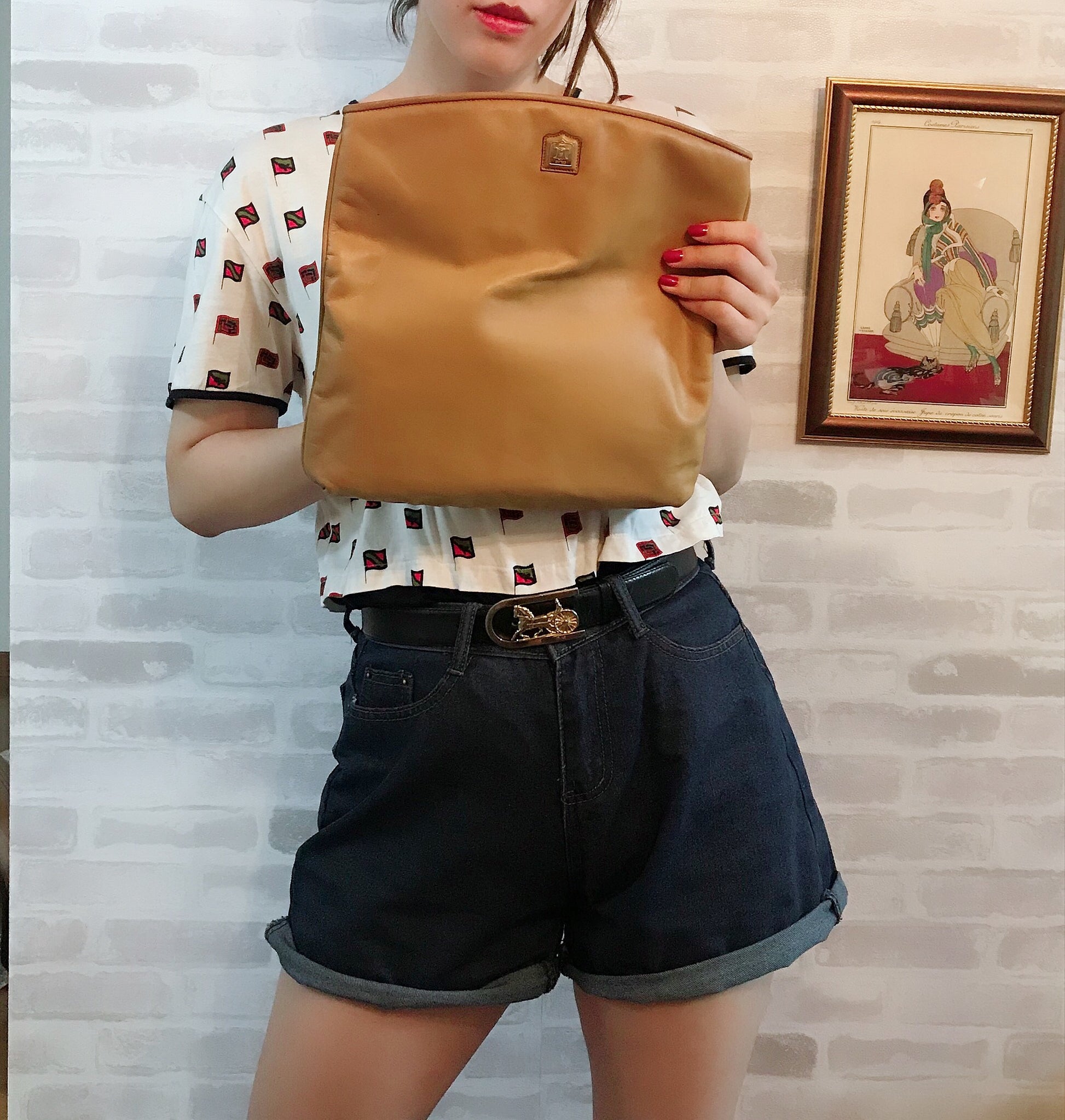 OLD CELINE マカダム 総革クラッチバッグ(キャメル)