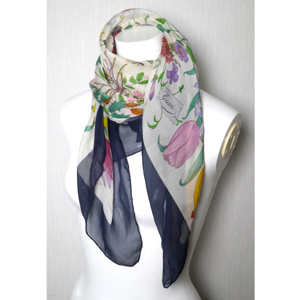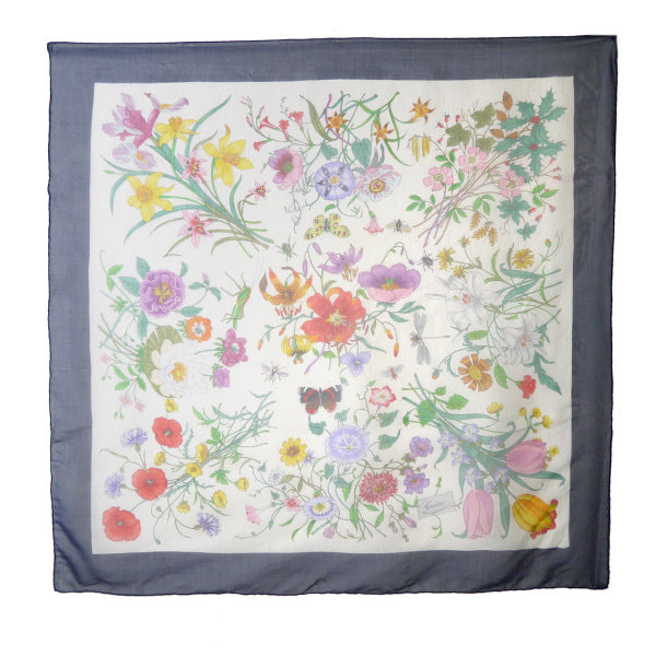 OLD Gucci フローラ 大判シルクスカーフ(紺系 )
