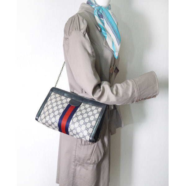 OLD Gucci PARFUM チェーンショルダー付クラッチバッグ(青)