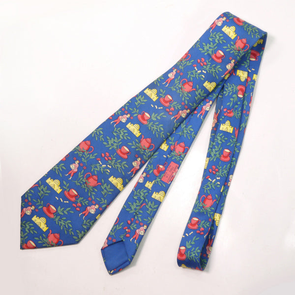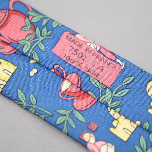 エルメス シルクネクタイ ティーカップ柄(ブルー系)