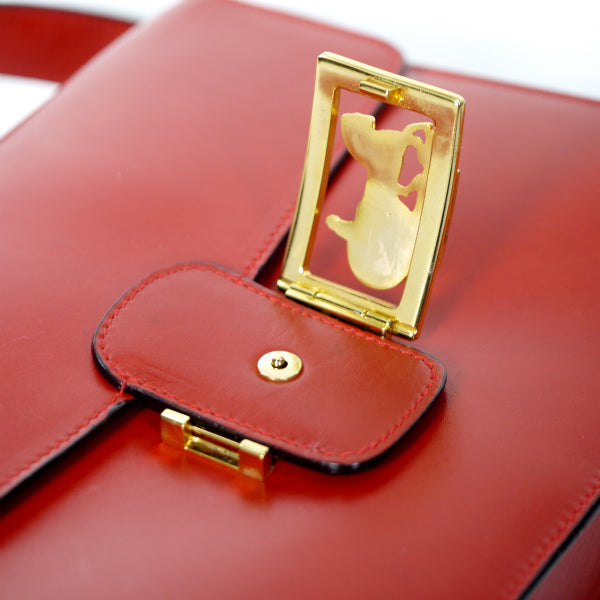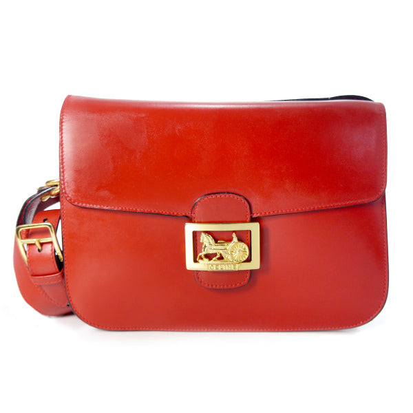 OLD CELINE レア!!馬車金具3層ショルダーバッグ(赤/総革)