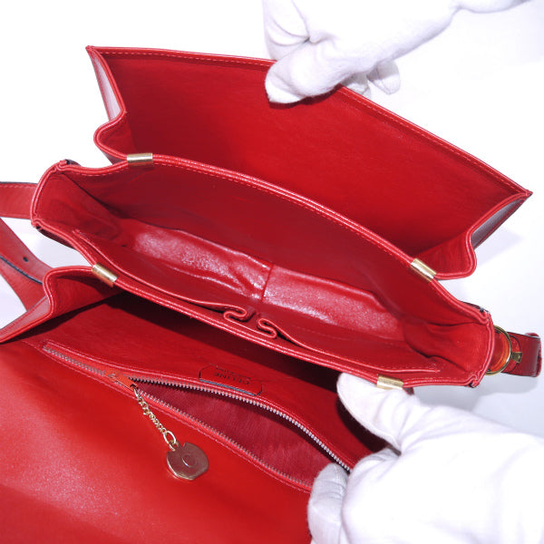 オールドセリーヌ レア!!馬車金具3層ショルダーバッグ(赤/総革)