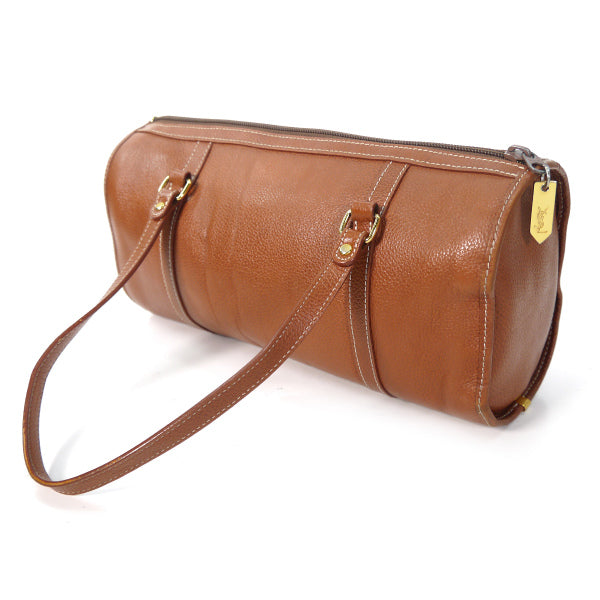YVES SAINT LAURENT <訳あり>ドラム型ロゴ ミニボストン(茶)