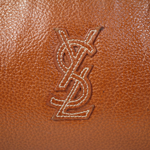 イブ サンローラン <訳あり>ドラム型ロゴ ミニボストン(茶)