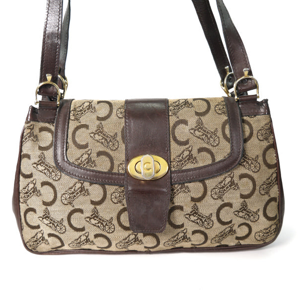 オールドセリーヌ 馬車柄ジャガード Wショルダーバッグ(茶)