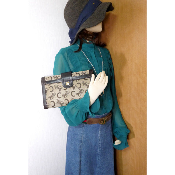 オールドセリーヌ 馬車柄ジャガード クラッチバッグ(茶)