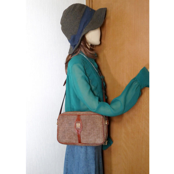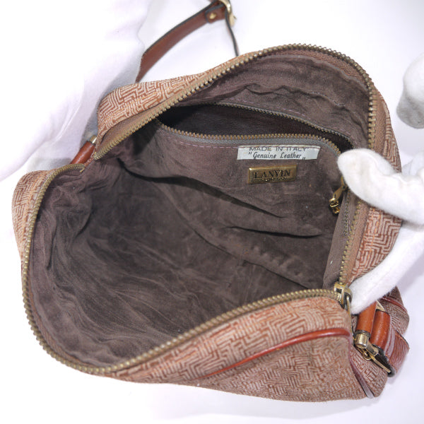 ランバン 幾何学模様スエード横長ショルダー(茶)