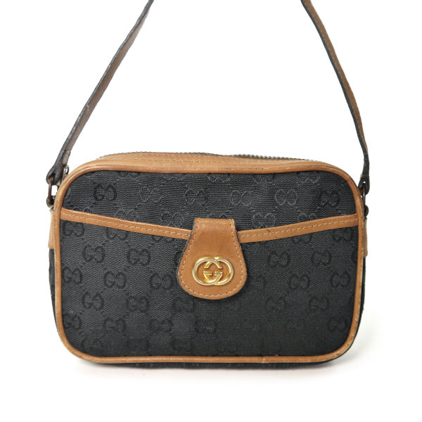 オールドグッチ70sジャガード織ミニポシェット(黒)