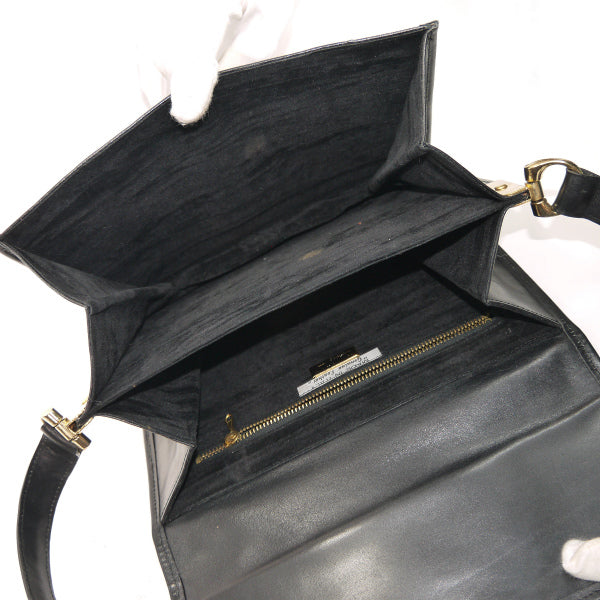 ランバン アコーディオン総革ショルダーバッグ(黒)