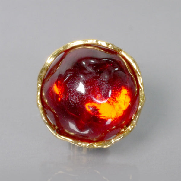 一見、アートガラスのように見える真っ赤な樹脂製のモチーフがゴールドトーンの枠に囲まれています☆