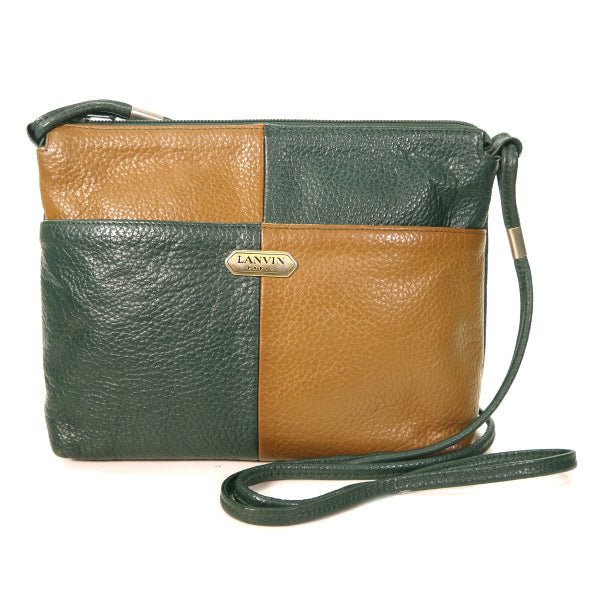 Lanvin ブロックチェック総革ショルダー(キャメル×グリーン)