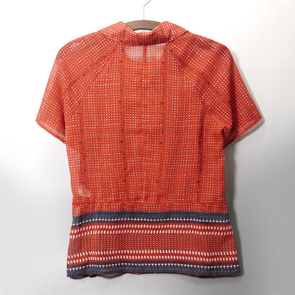 Roberta ベルト編み込み柄 半袖ブラウス(赤系)
