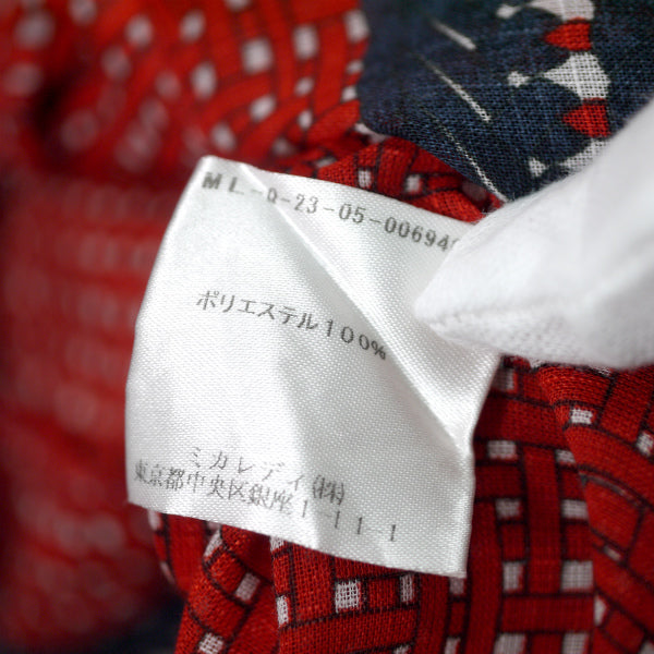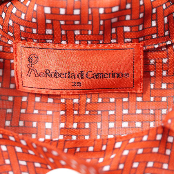 ロベルタ ベルト編み込み柄 半袖ブラウス(赤系)