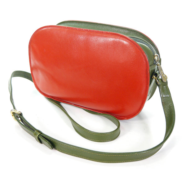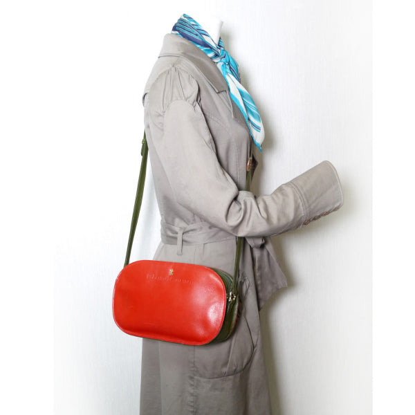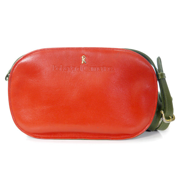 Roberta バイカラー総革ラウンドポシェット(赤×緑)