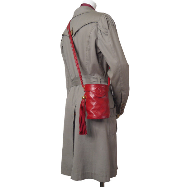 シャネル CHANELフリンジ筒形ショルダー(赤)