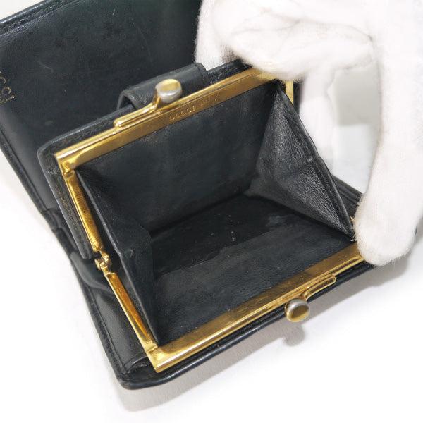 オールドグッチ 総革がま口シェリー折財布(黒)