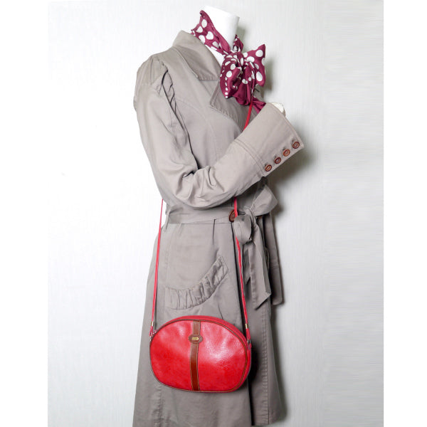 鮮やかなレッドに、ブラウンレザーのライン・ミニロゴプレートがレトロな雰囲気☆