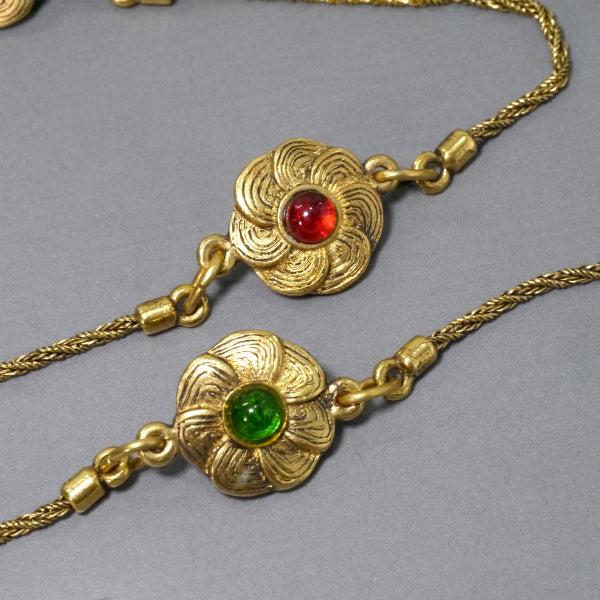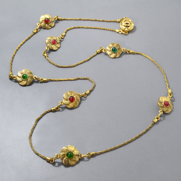 ヴィンテージシャネル フラワー×ストーン ロングネックレス(ゴールド)