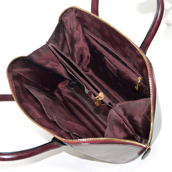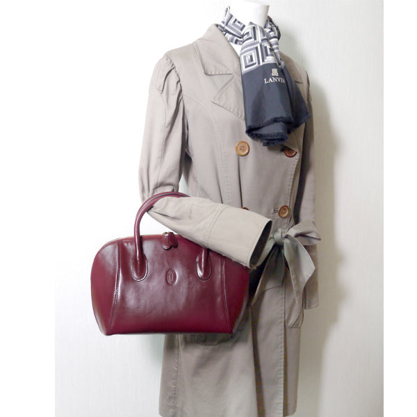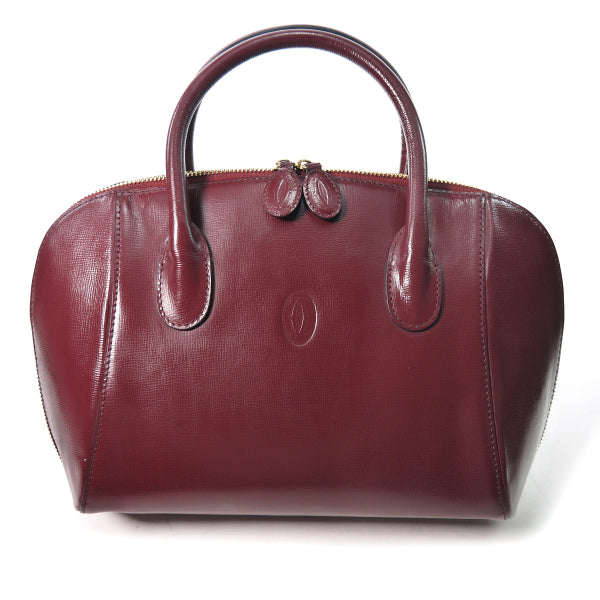 Cartier ラウンドファスナー総革ミニボストン(ボルドー)