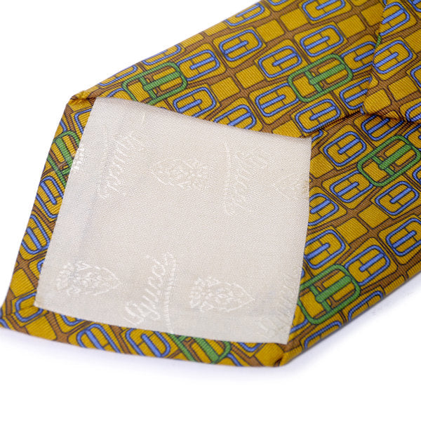 OLD Gucci シルクネクタイ ベルト柄(イエロー系)