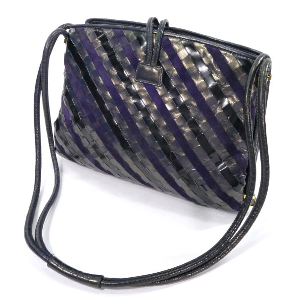 オールドグッチ レア!編み込みレザーがま口ショルダー(紫)