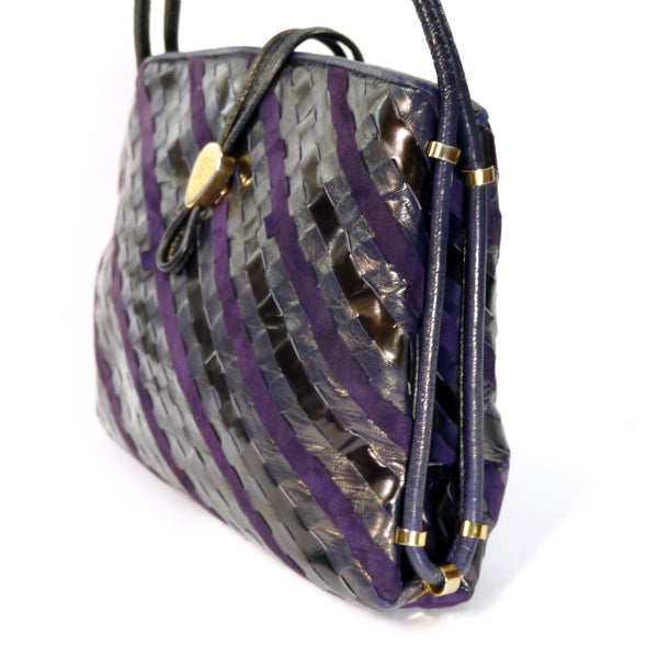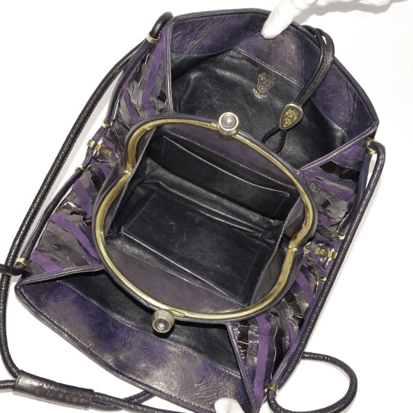 OLD Gucci レア!編み込みレザーがま口ショルダー(紫)