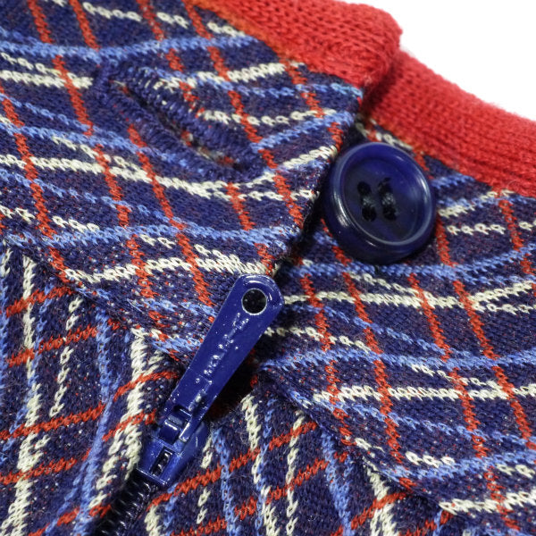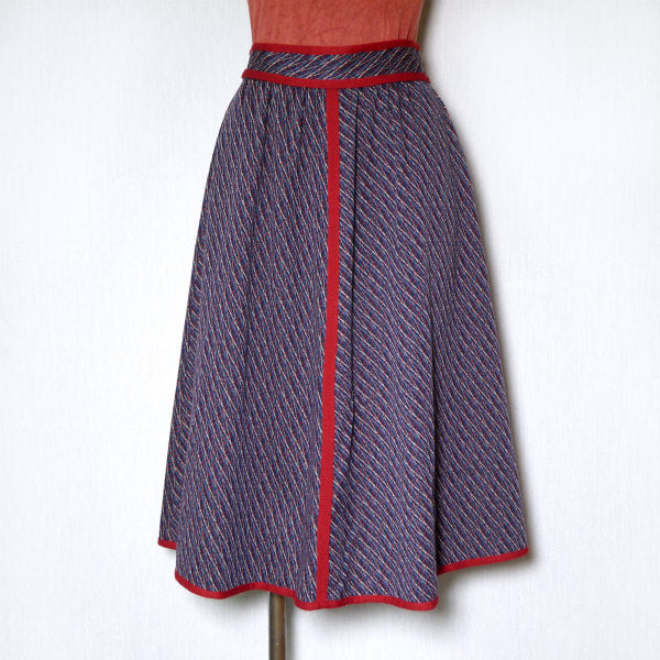 LANVIN フリンジリボン膝丈ウールスカート(紺×赤)