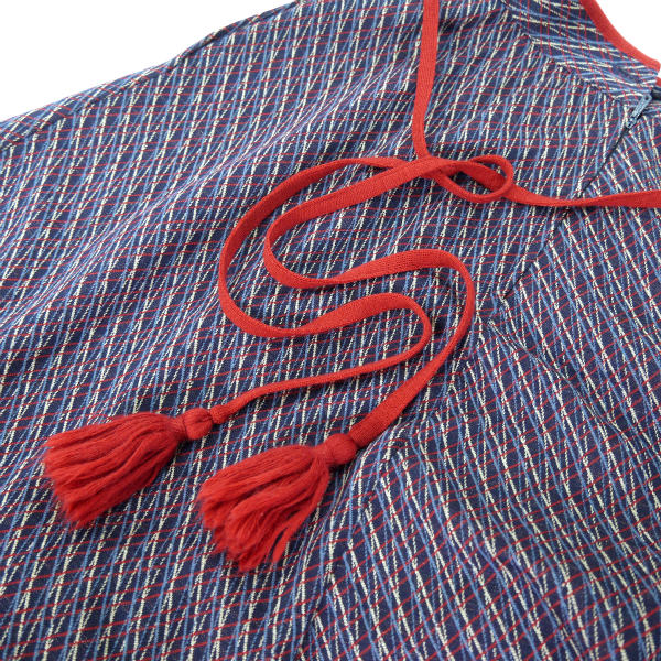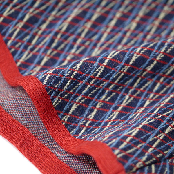 ランバン フリンジリボン膝丈ウールスカート(紺×赤)