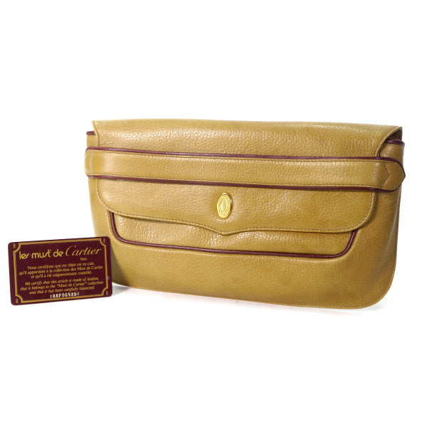 Cartier 総革クラッチバッグ(マスタードイエロー)