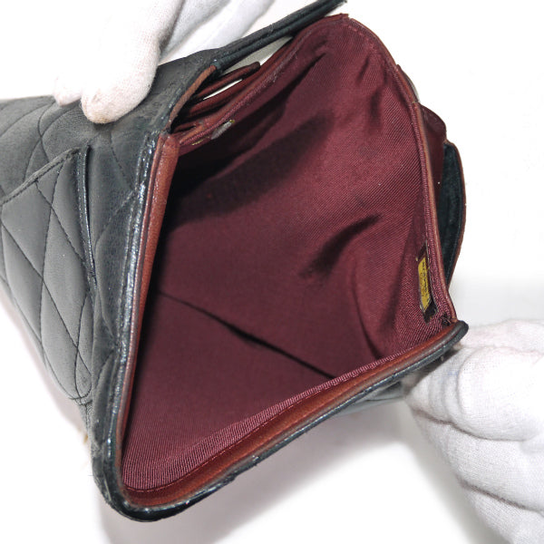 ヴィンテージシャネル マトラッセ3つ折り長財布(黒/ラムスキン)