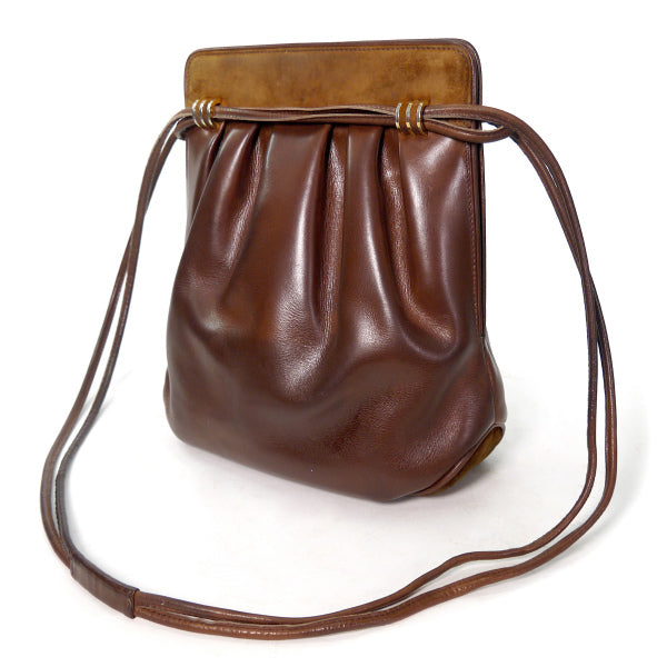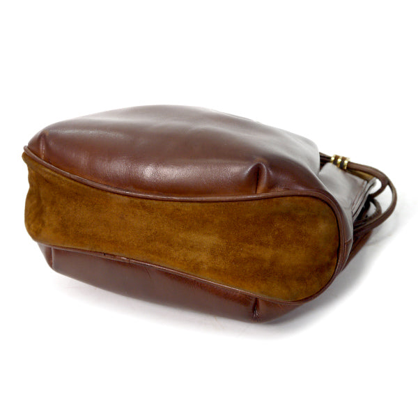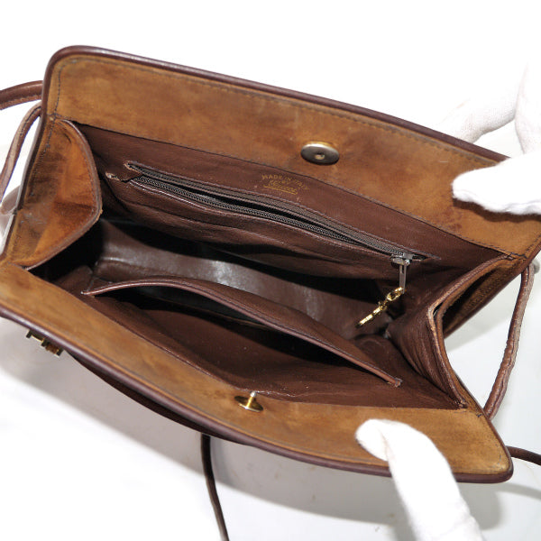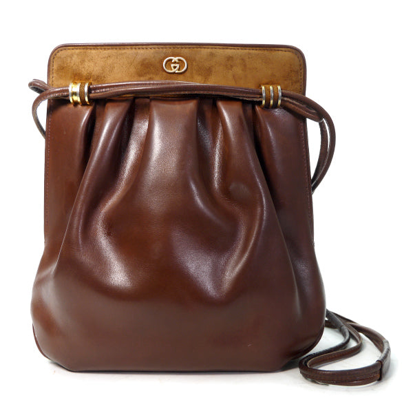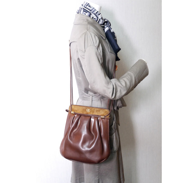 オールドグッチ異素材MIX 総革Wショルダーポシェット(チョコ)