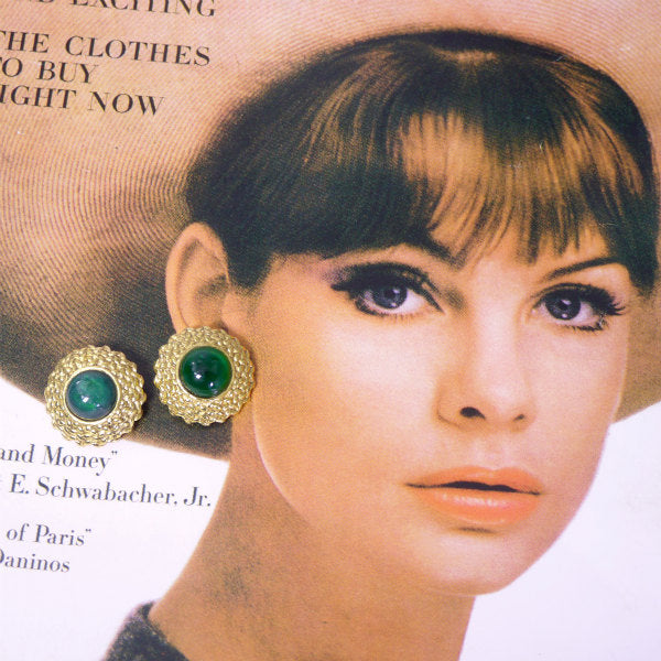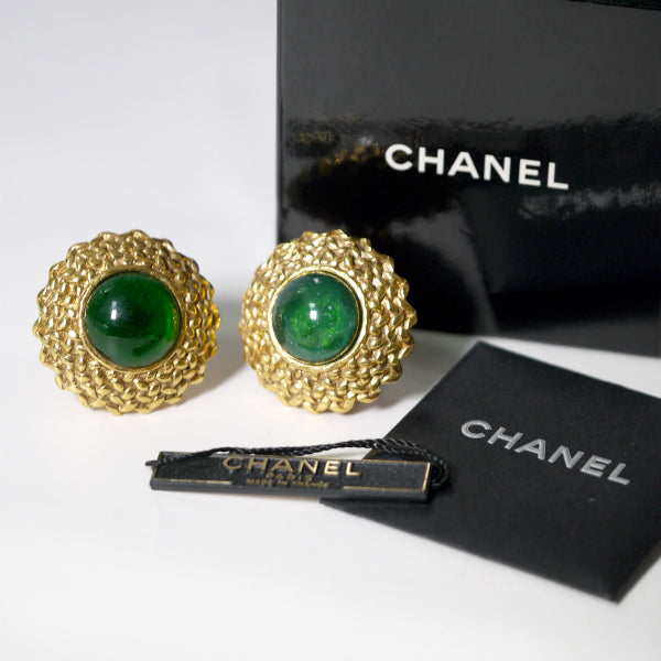 ヴィンテージシャネル グリポア グリーンイヤリング(箱付き)