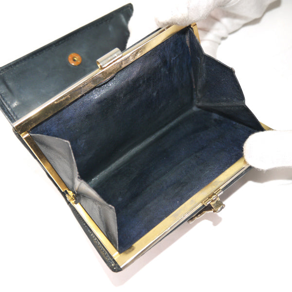オールドグッチシェリー本革ビット金具折財布(濃紺)