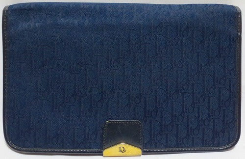 オールドディオール  Christian Dior(クリスチャンディオール) ネイビー クラッチバッグ(セカンド) iPadミニ ケースとしても。 ジャガード織り生地 人気のトロッター柄 化粧ポーチとしても。 サイズ(約 cm)横25 縦16 奥1、5 内装4層仕切り ホックが奥まで閉まりません 薄汚れもあります 格安で! OD-013N-2 OD-013N-5