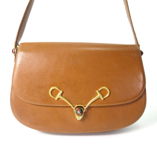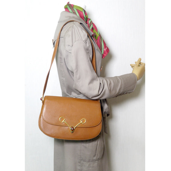 OLD Gucci ピグスキン ビット×キャップ金具ショルダー(キャメル)