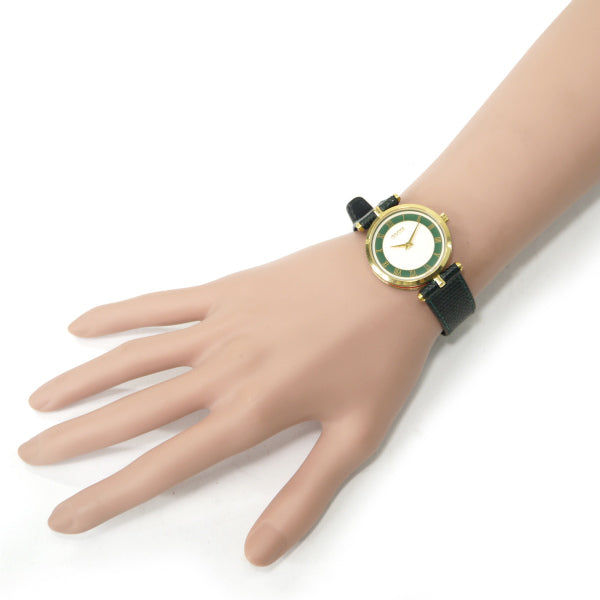 オールドグッチ サイドシェリービッグ腕時計(リザード/緑)