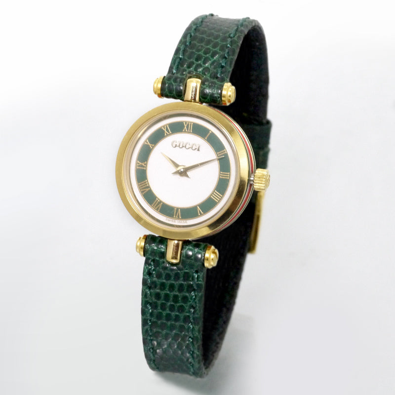 OLD Gucci サイドシェリーミニ腕時計(グリーン)