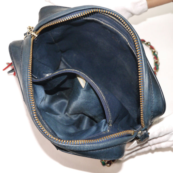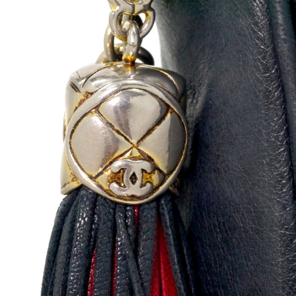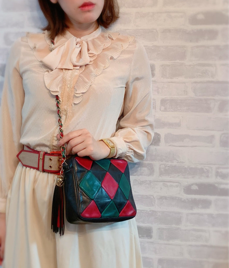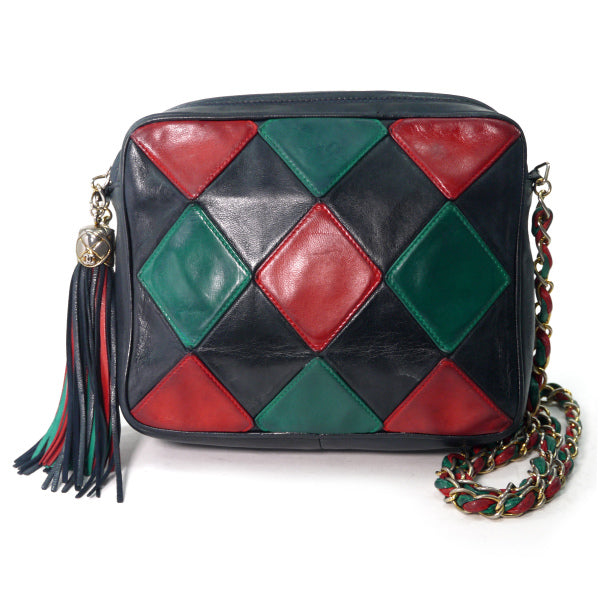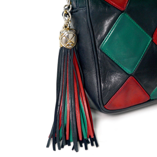 ヴィンテージシャネル ダイヤパッチワーク フリンジチェーンバッグ(赤/緑/紺)