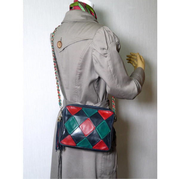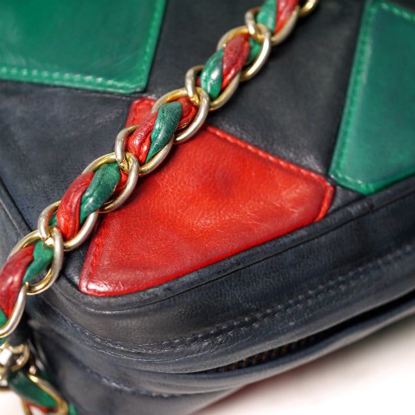 CHANEL80s!ダイヤパッチワークショルダー(赤/緑/紺)