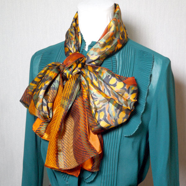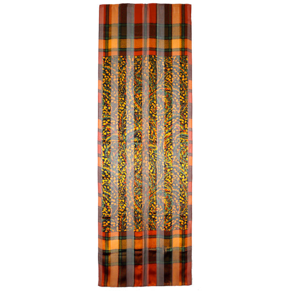 YVES SAINT LAURENT チェック&花柄シルクストール(オレンジ系)