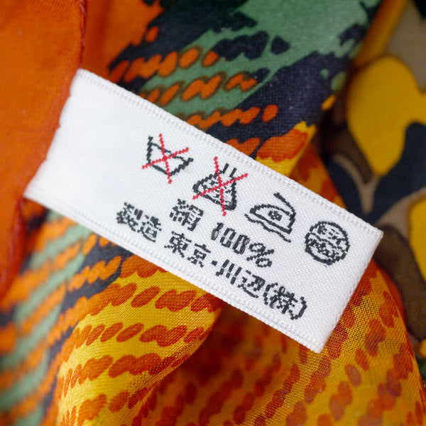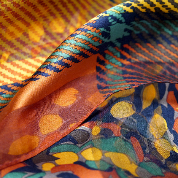 イヴ サンローラン チェック&花柄シルクストール(オレンジ系)