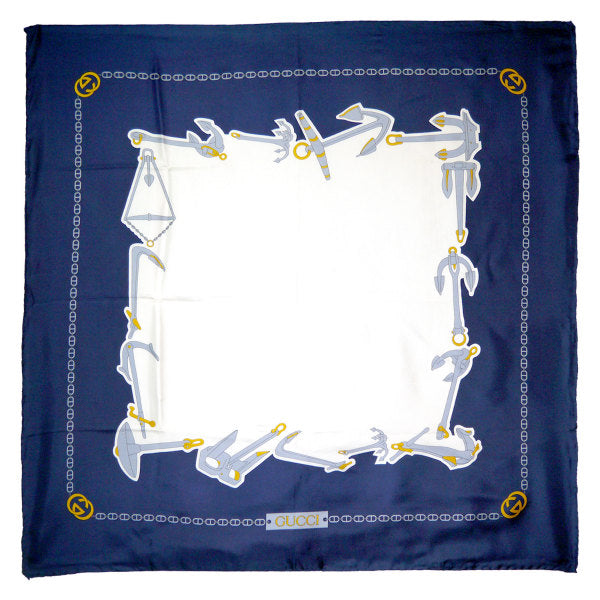 オールドグッチ 80sシルクスカーフ(青/マリン柄)