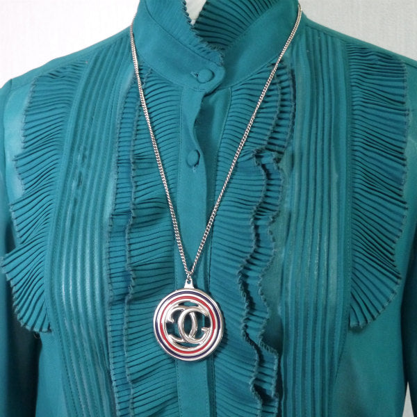 青×赤のシェリーラインと、インターロッキングGロゴのプレートが素敵なネックレス