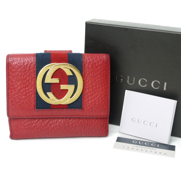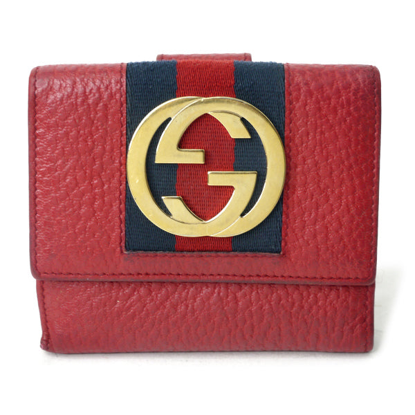 グッチ 型押しレザーWホックシェリー財布(赤)