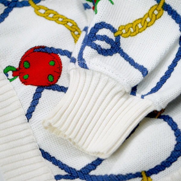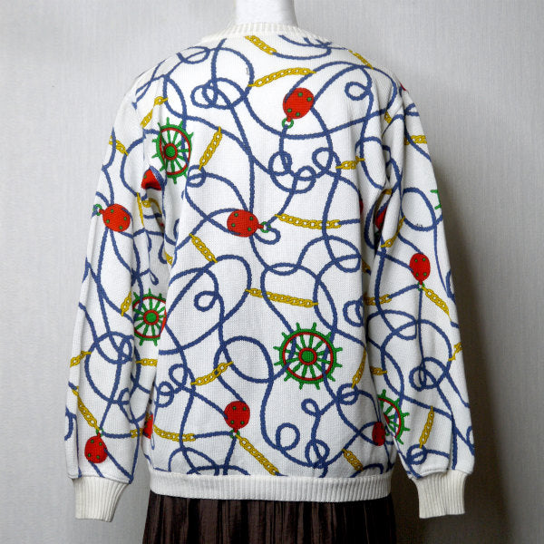 オールドセリーヌ ロープチェーン柄コットンカーディガン(白系)