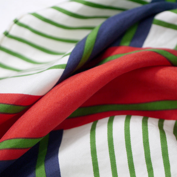 鮮やかなグリーンのチェックに、四方の赤と紺のコントラストが爽やかな一枚☆