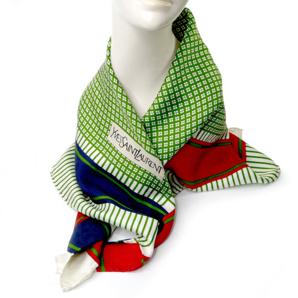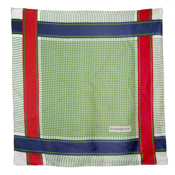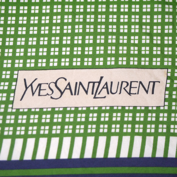 YVES SAINT LAURENT シルク大判スカーフ チェック柄(緑/赤/紺)