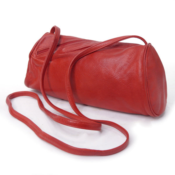 ヴィンテージランバン 総革デザインファスナー筒型ポシェット(赤)